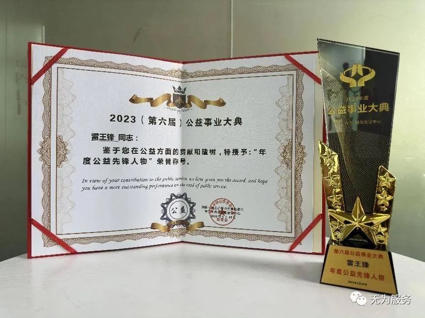 在本届公益大典活动中,深圳市无为科技服务有限公司创始人雷王锋荣获“年度公益先锋人物”荣誉称号。