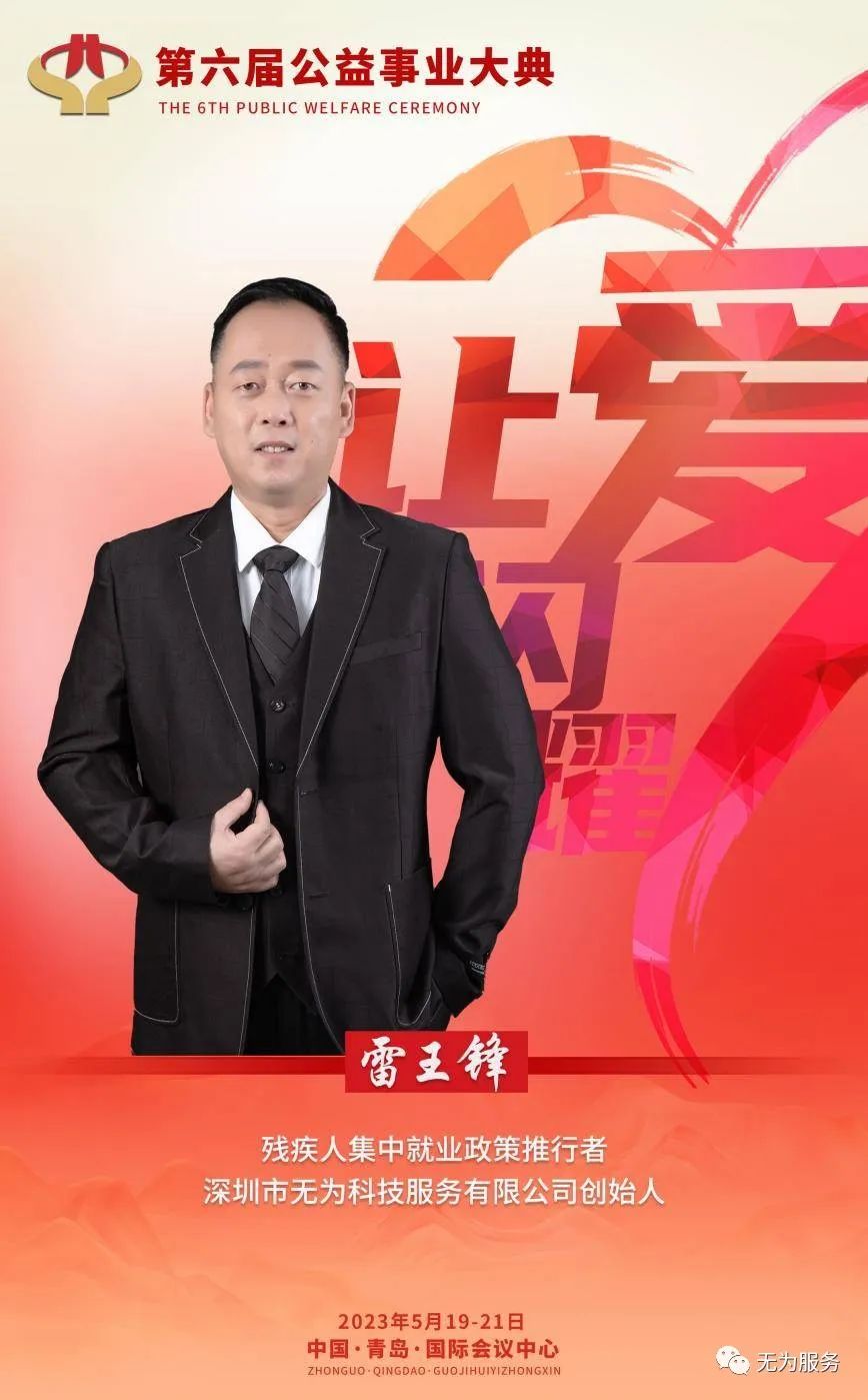 在本届公益大典活动中,深圳市无为科技服务有限公司创始人雷王锋荣获“年度公益先锋人物”荣誉称号。